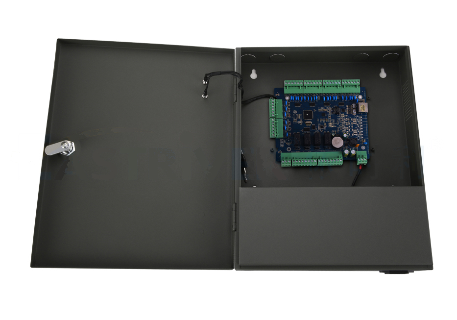 ◉最新一代32位ARM处理器, ARM Cortex-M3内核,运算速度更快、性能更强; ◉全新的主板设计,硬件、软件看门狗,双重防护,杜绝死机,让设备运行更稳定; ◉工业级超稳定设计,全新主板采用三防设计,防水、防油、防潮,使用更持久; ◉领先的数据存储算法,支持数据循环存储、数据可恢复、记录和名单可动态分配,数据安全更有保障; ◉多种控门选择,支持一控二门、双门双向刷卡,支持一卡一密防复制序列号功能; ◉高安全的TCP/IP,采用防雷,防浪涌,防静电设计; ◉针对韦根信号、门磁信号、电锁信号增加过流过压双重保护; ◉灵活多样的开门控制模式:只刷卡开门、刷卡或密码、只密码、刷卡+个人密码、刷卡+普通开门密码、任意多卡开门、指定多卡开门、区域APB控制、手机APP开门;(选配) ◉支持远程实时监控开门状态、远程实时开门,名单容量可达5万条,记录可达10万条,设备断电数据保护10年; ◉全新定制铁箱支持显示电源状态、工作状态指示灯,韦根信号格式自适应支持韦根26、韦根34、韦根66读头; ◉支持消防信号、门磁信号、烟雾信号、内部事件联动指定继电器输出功能; ◉可灵活设置多个时间组、门状态、节假日时间和不同用户的各种权限,各种控制时间可精确到分; ____________________ ■外部输入:电压 AC220V、功率 10W; ■内部输入:电压 DC12V、电流5A; ■工作环境:温度:0℃~70℃、湿度:10%~90%; ■传输速率:9600bps/19200bps/38400bps; ■工作频率:IC类别13.56MHz、2.4G、ID类别125khz;(选配) ■读卡类型:Mifare1卡、NFC手机卡、贴片卡、CPU卡、SIMpass卡、UIMpass卡、2.4G卡、非接触金融IC卡、ID卡;(选配) ■读卡距离:Mifare1卡≥40mm、NFC手机卡≥10mm、贴片卡≥20mm、CPU卡≥30mm、SIMpass卡≥10mm、UIMpass卡≥10mm、2.4G卡≥20mm、非接触金融IC卡≥30mm、ID卡≥30mm; ■读写时间:Mifare1卡小于0.5S、NFC手机卡小于0.8S、贴片卡小于0.5S、CPU卡小于0.5S、SIMpass卡小于0.5S、UIMpass卡小于0.5S、2.4G卡小于1S、ID卡小于0.8S; ■输入输出:支持4个韦根读头,2组按钮信号,2组门磁信号,2组外部信号,2组电锁输出,2组辅助输出; ■存储容量:记录最大可保存100000条数据;黑、白名单最大可超过50000条; ■通信距离:TCP≥100米,超过加中继器; ■设备尺寸:L280mm×W72mm×H350mm;