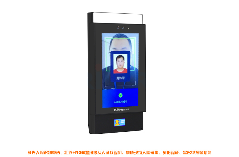 ◉红外+RGB双摄像头人证核验机,集成现场人脸采集、身份验证、黑名单预警功能; ◉世界领先的人脸特殊3D算法,国内人脸算法排名领先; ◉高性能嵌入式平台中,动态双摄彻底解决照片欺骗; ◉动态双摄防伪,夜间红外、RGB双补光; ◉内置身份阅读器,支持串口、韦根输出,开关信息输出可控制通道闸; ◉支持储存1万张人脸照片、100万条识别记录; ◉支持1:1人脸比对,1:N人脸识别; ◉1:N识别时万分之三的误识率,97%通过率,1:1人脸比对识别准确率达到99.8%; ◉支持人证核验模式、人脸识别模式,两种模式可同时使用; ◉操作系统:Android, CPU采用4核,1.8 GHz主频; ◉屏幕参数1024*600,全视角,7英寸; ◉电源DC12V~16V;工作温度-10℃--+60℃,工作湿度10%--90%; ◉摄像机分辨率200W像素;光圈2.4,焦距6mm,白平衡自动; ◉安装方式:台式支架安装/壁挂支架安装/道闸支架安装,设备尺寸:23cm*11.6cm*2cm;